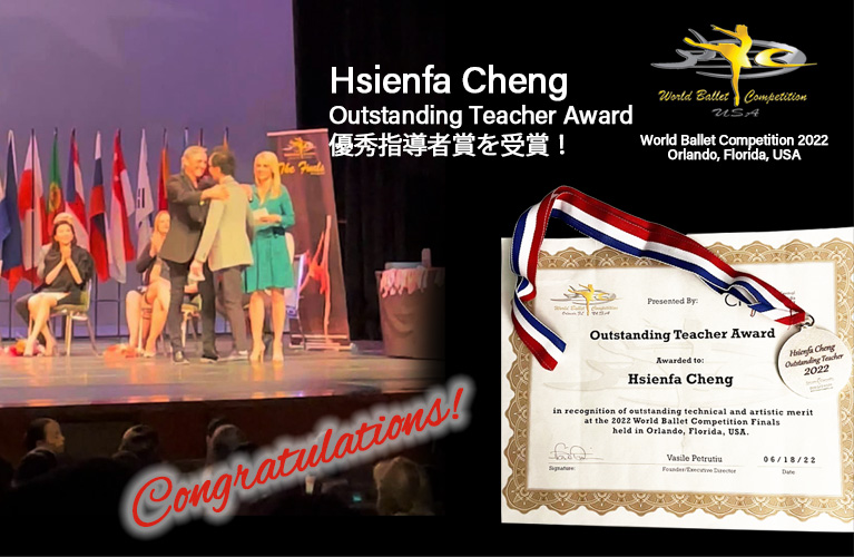 2022年11月: 京都で開催されたP.B.K.京都バレエコンクール 2022におきまして当アカデミー芸術監督のチェン・シェンファが最優指導者賞を頂きました。
