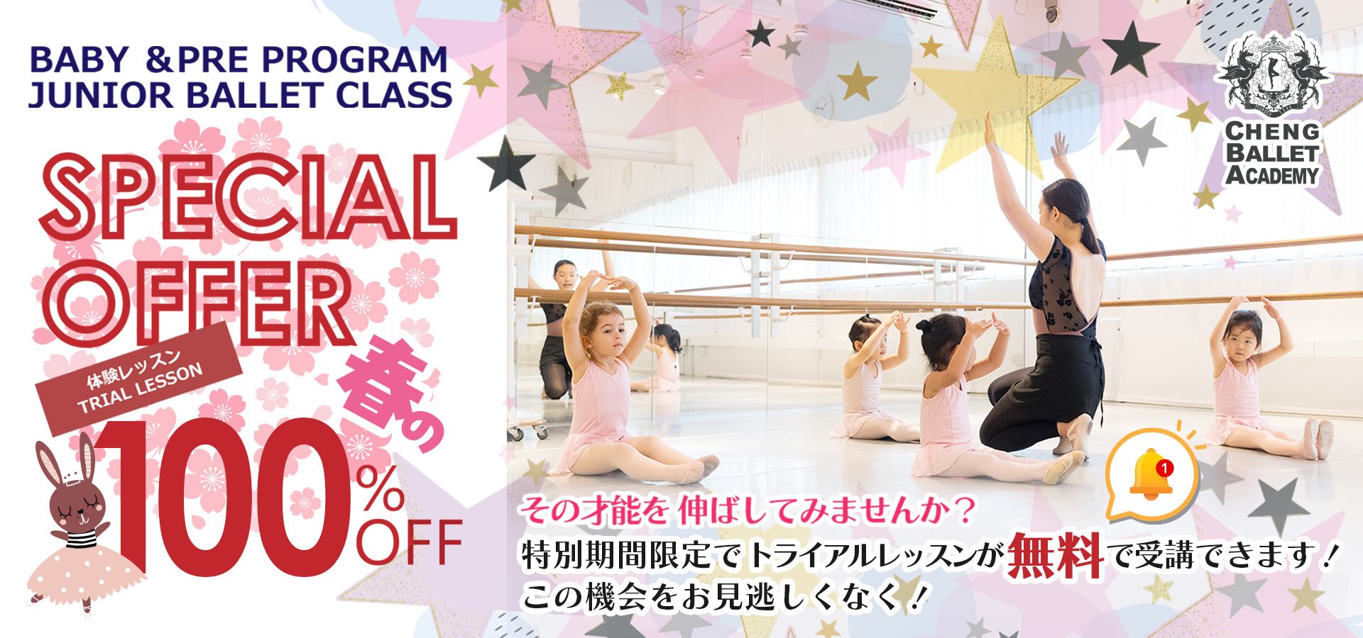 また、チェンバレエアカデミーは、国内外でのコンクールやロシアのワガノワ本校への短期留学、ダンスを介した国際交流等にも参加し、バレエを通して、人生における重要なスキルと態度と姿勢を育み、未来の輝くバレエダンサーとなる有望な人材を育成することを目指しています。
