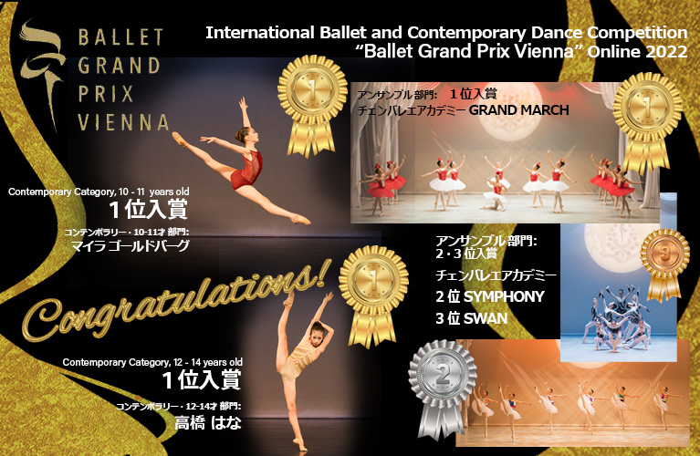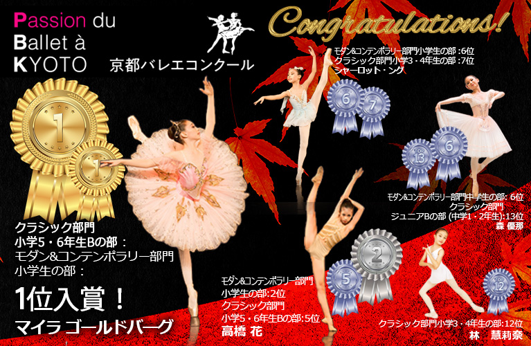 2022年11月: 京都で開催されたP.B.K.京都バレエコンクール 2022におきまして当アカデミーの生徒達が栄えある賞を頂きました。心より感謝いたします。
